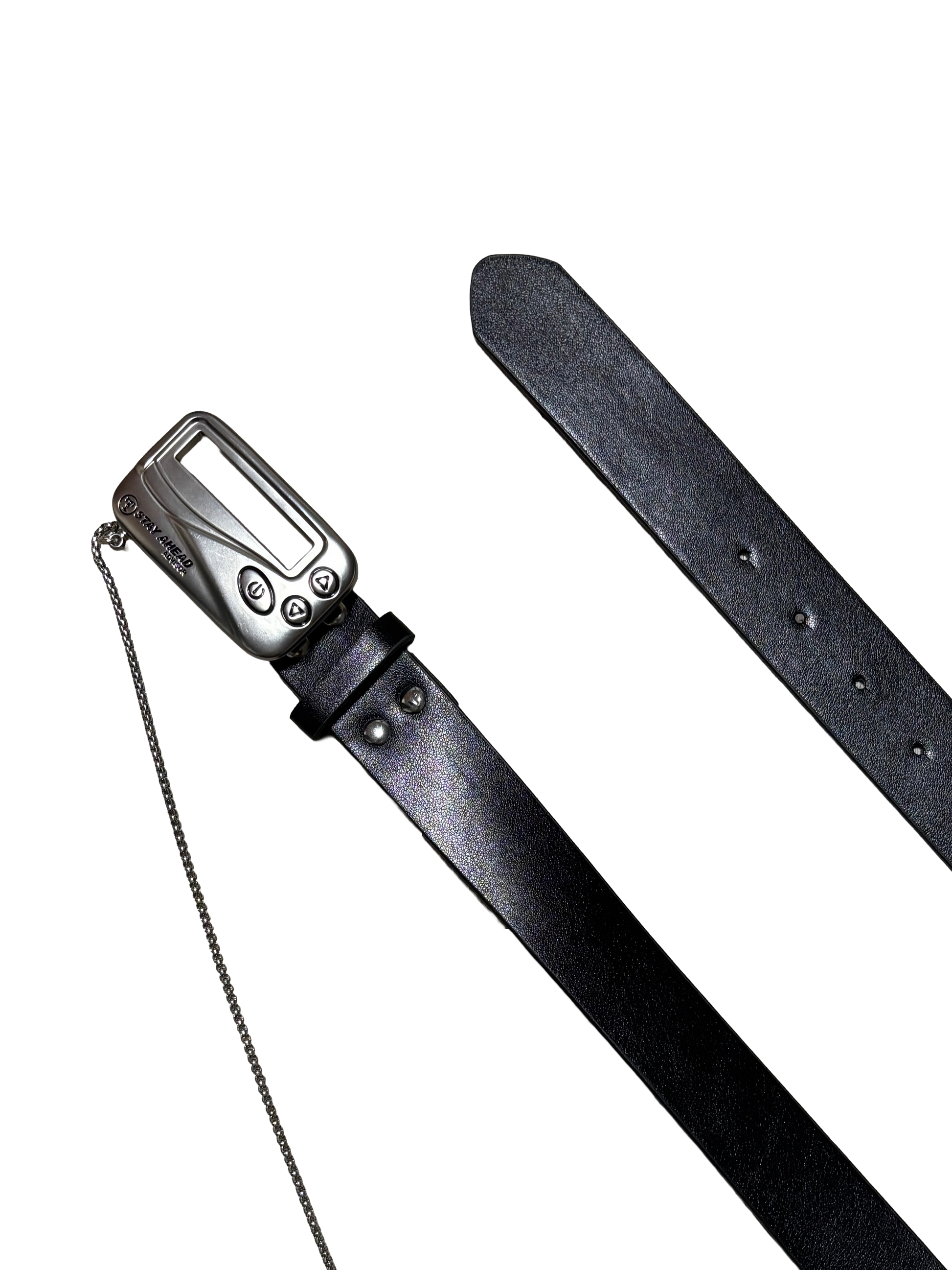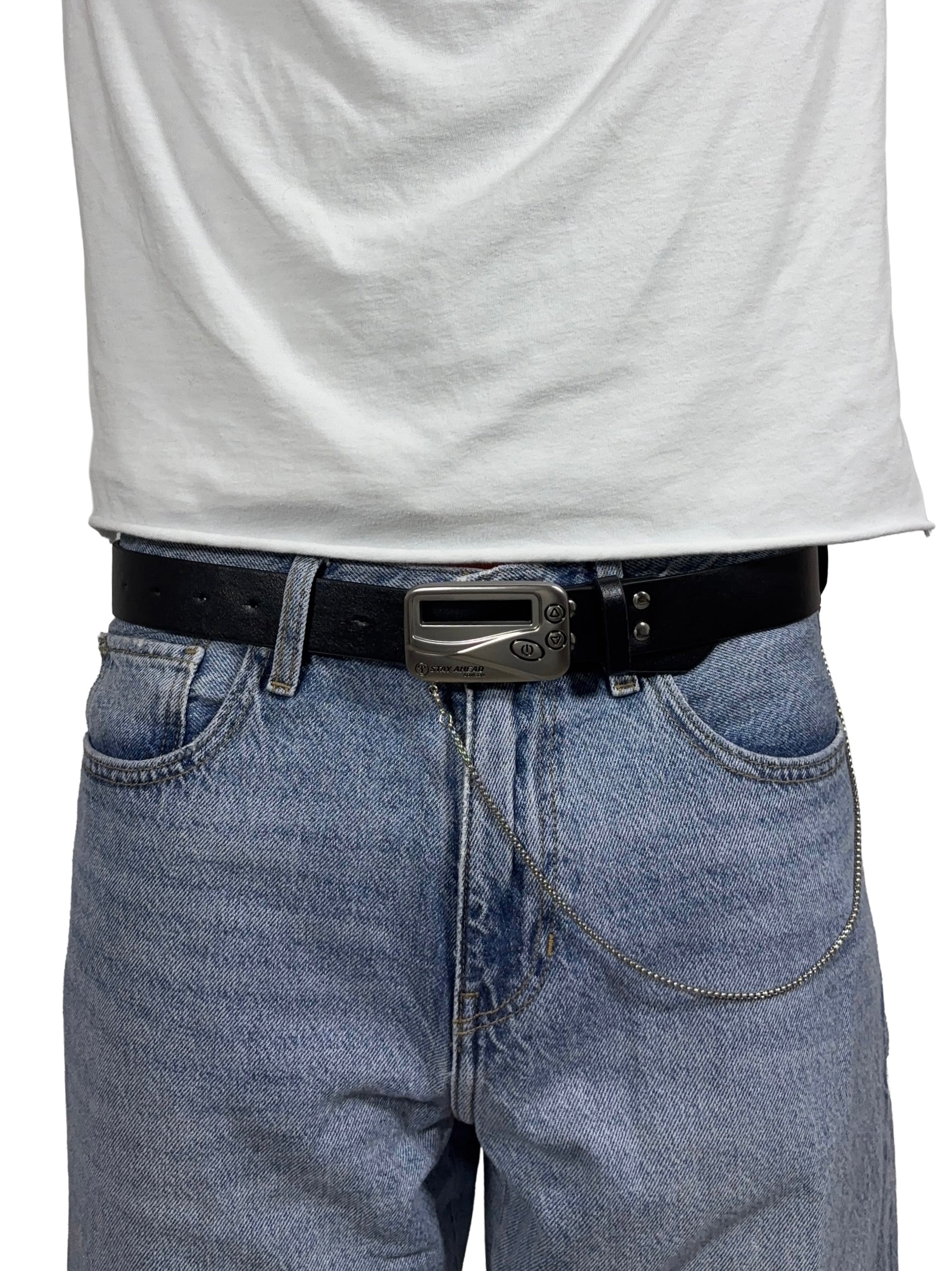 Made from genuine leather, the Pager Belt features a metal buckle modeled after a retro pager, finished with engraved details. The perfect belt if you want to wear the era when pagers ruled.