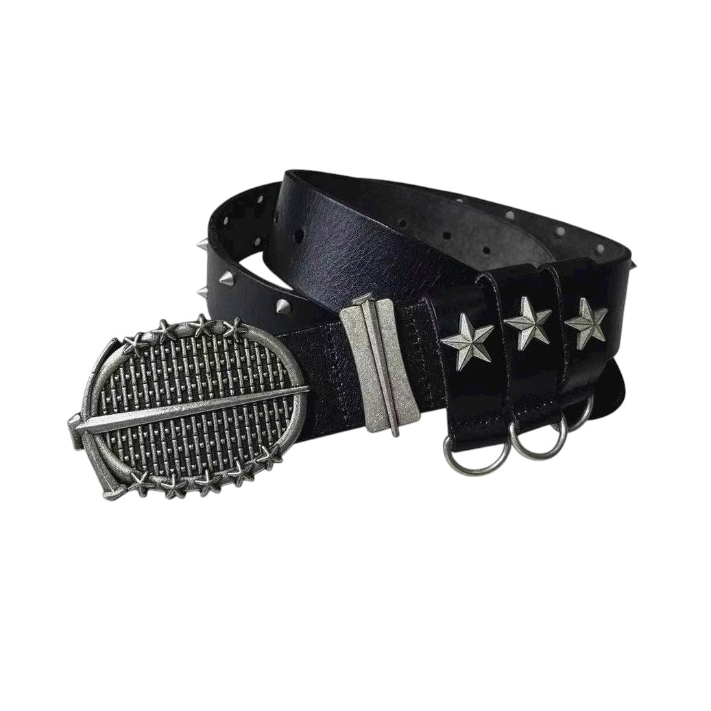 The Nova Belt features a heavy alloy grill buckle design, finished with raised star studs along the strap. The perfect belt if you want an industrial finish to your look.